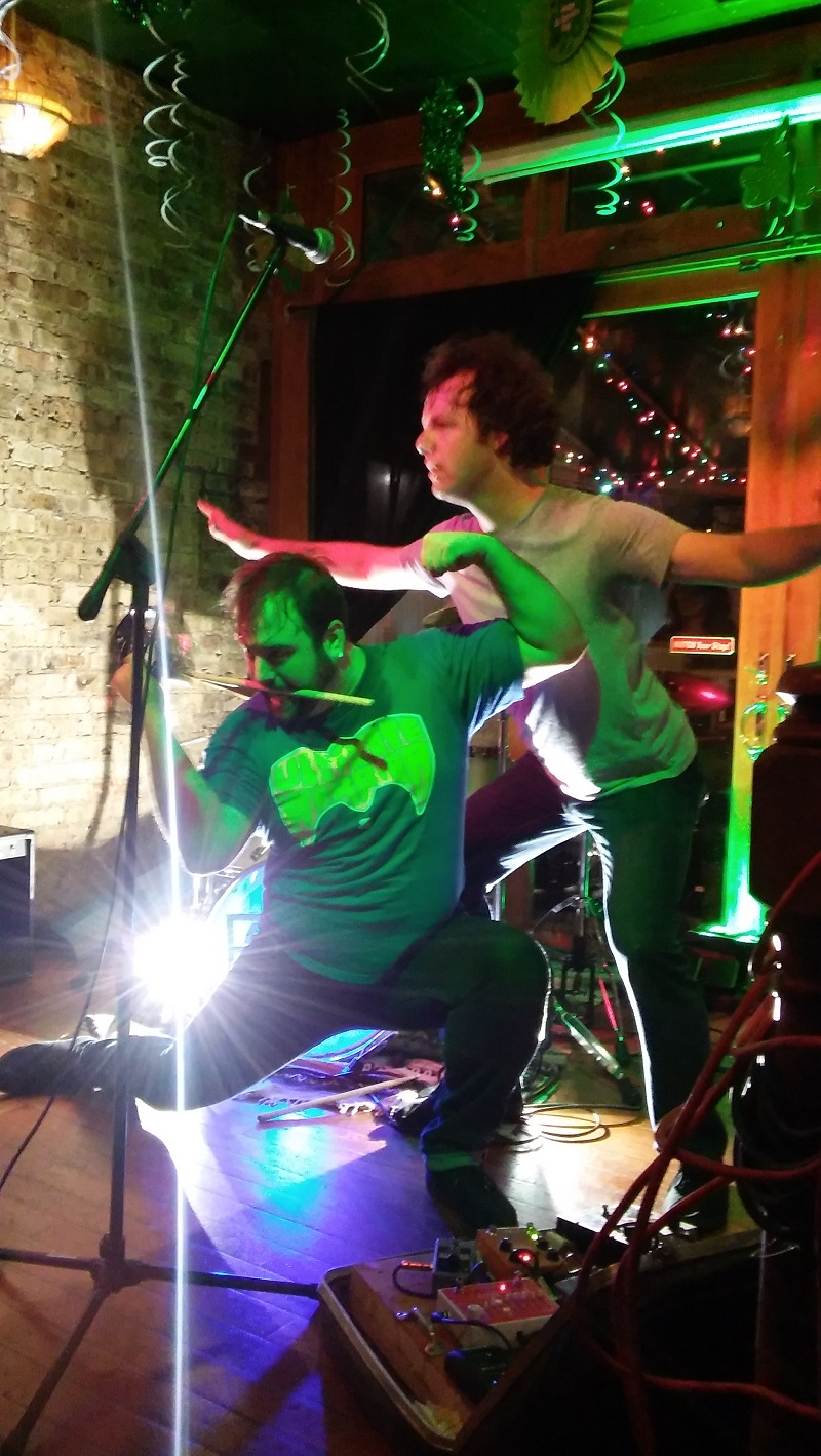 Being the square that I am, I showed up to the venue about thirty minutes before showtime, thinking maybe I’d get to say hi to the respective artists while they set up. Upon entering I saw Brother O’ Brother’s guitarist/vocalists Chris Banta, stretching his arms and legs out far to the sides and almost jumping in place. He turned around and looked back at drummer Warner Swopes, shook his head smiling and said “I dunno, it’s kinda tight up here..”. Of course it’s not the biggest venue, but I thought how could a band made up of only two people be worried about the size of a stage?