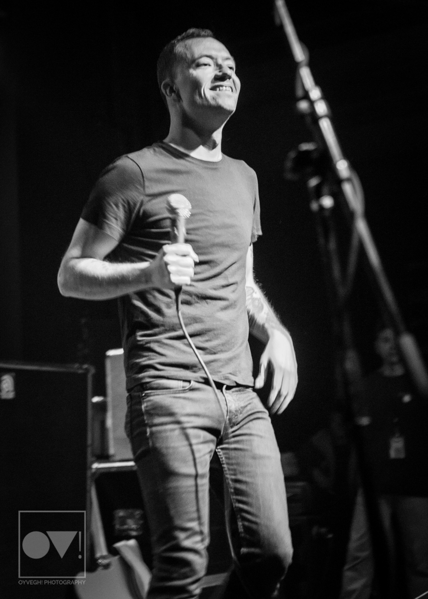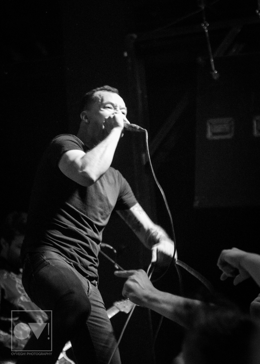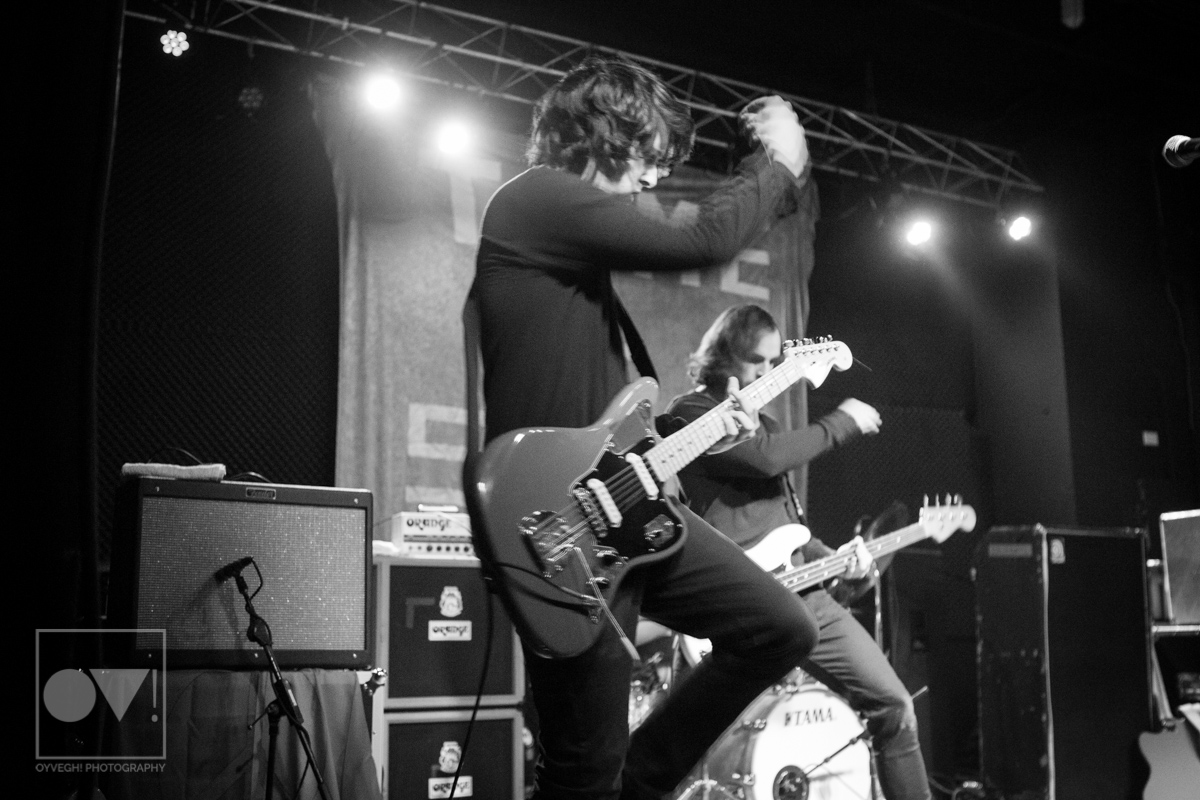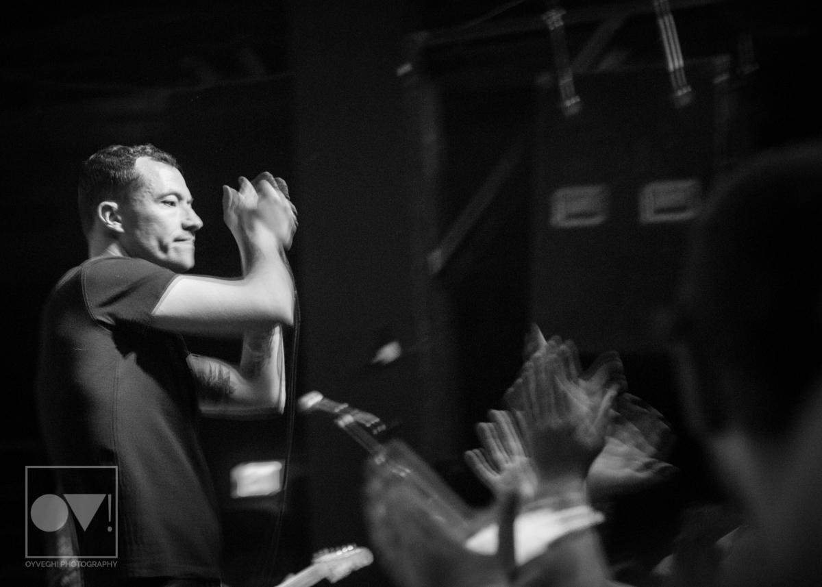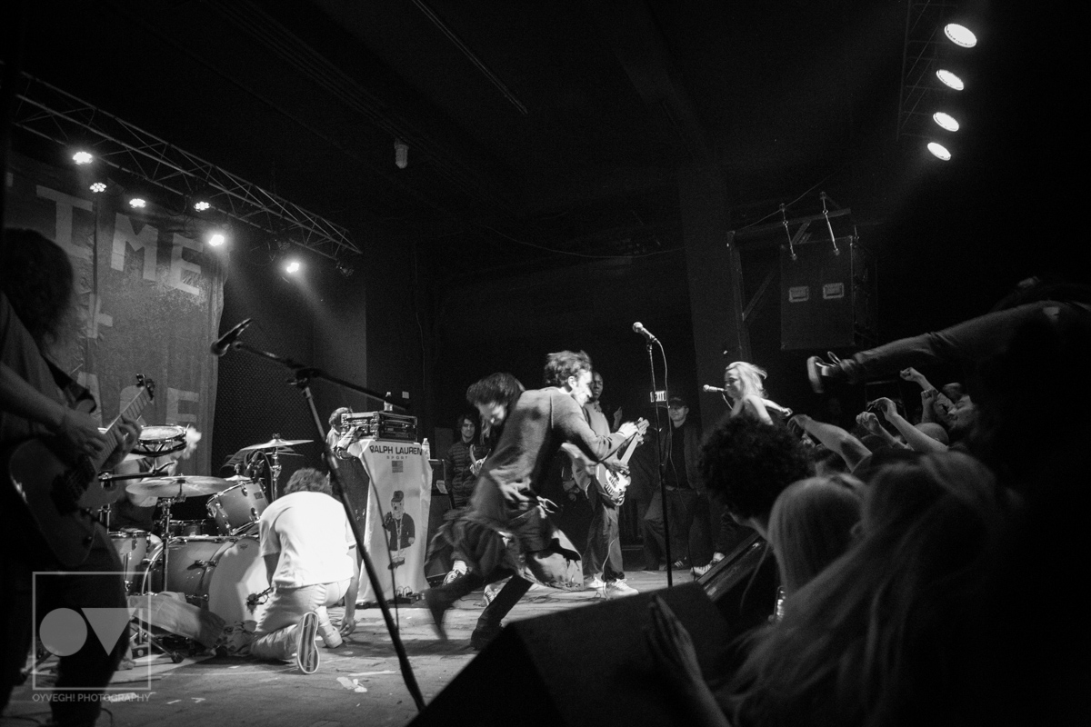 As songs like “Gravity” and “I Don’t Wanna Be Blind” played, the savage merry-go-round of guys and girls that would enter and exit the stage grew in intensity and number. Monitors and mic stands were knocked over every time someone would muster up the courage to jump the stage and surf back into the crowd. While most were lucky to be caught by waiting hands, some crash-landed onto the cement floor, only to dust themselves off and dive back in to try again. The insanity didn’t seem to bother the group, seamlessly maneuvering around people as they continued to play.