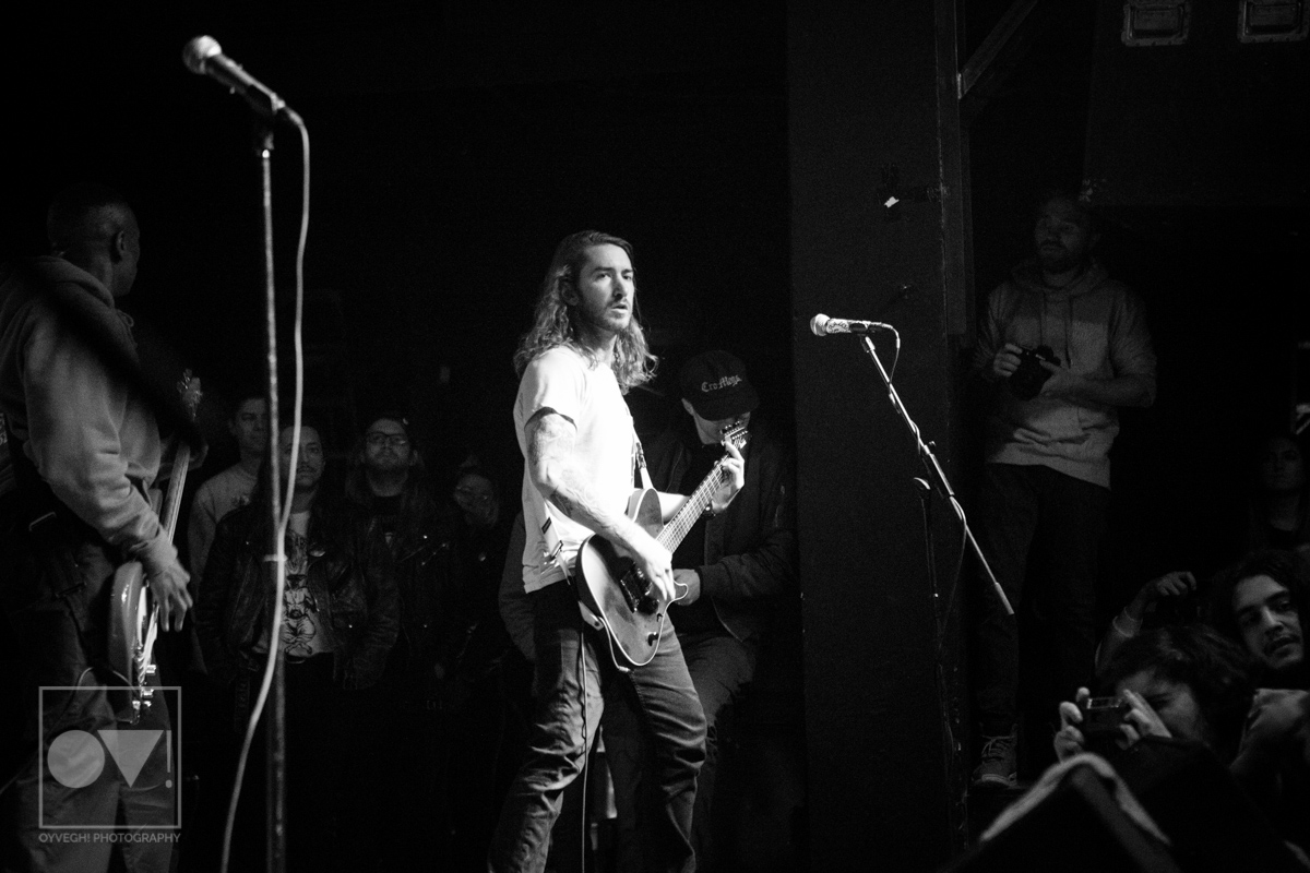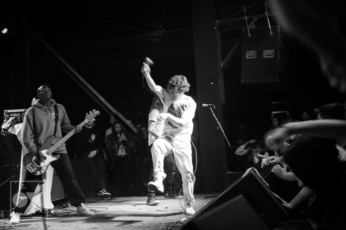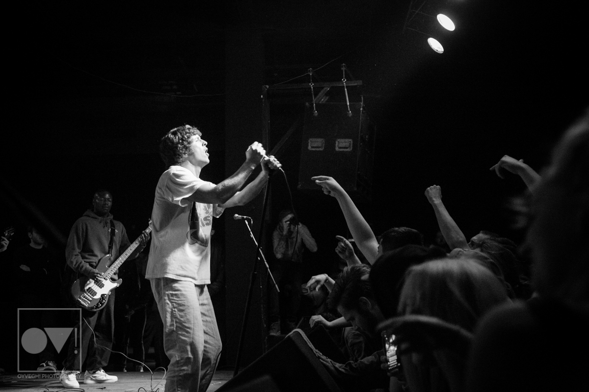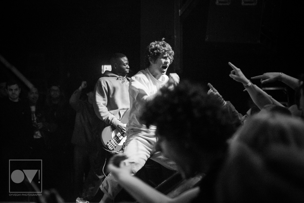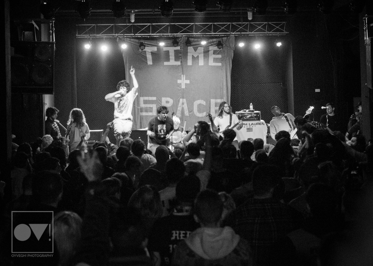 Hardcore punk band Turnstile literally kicked off their latest tour in support of their sophomore LP Time & Space Monday night, April 9th at the Cleveland Agora Ballroom. Lead singer Brendan Yates stormed the stage as the band played the first notes of “Bomb”, jumping, kicking, and punching the air, the crowd responding in kind.