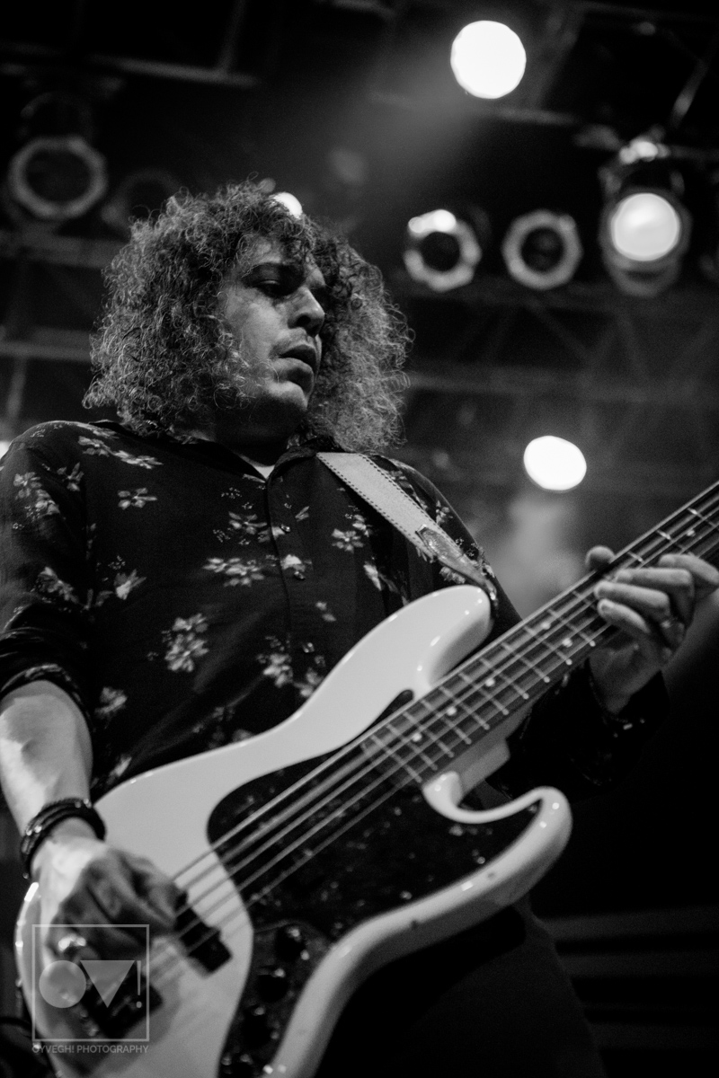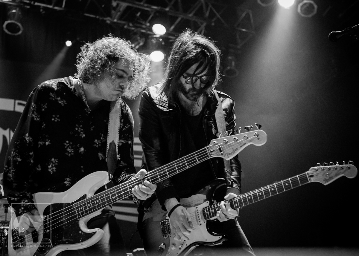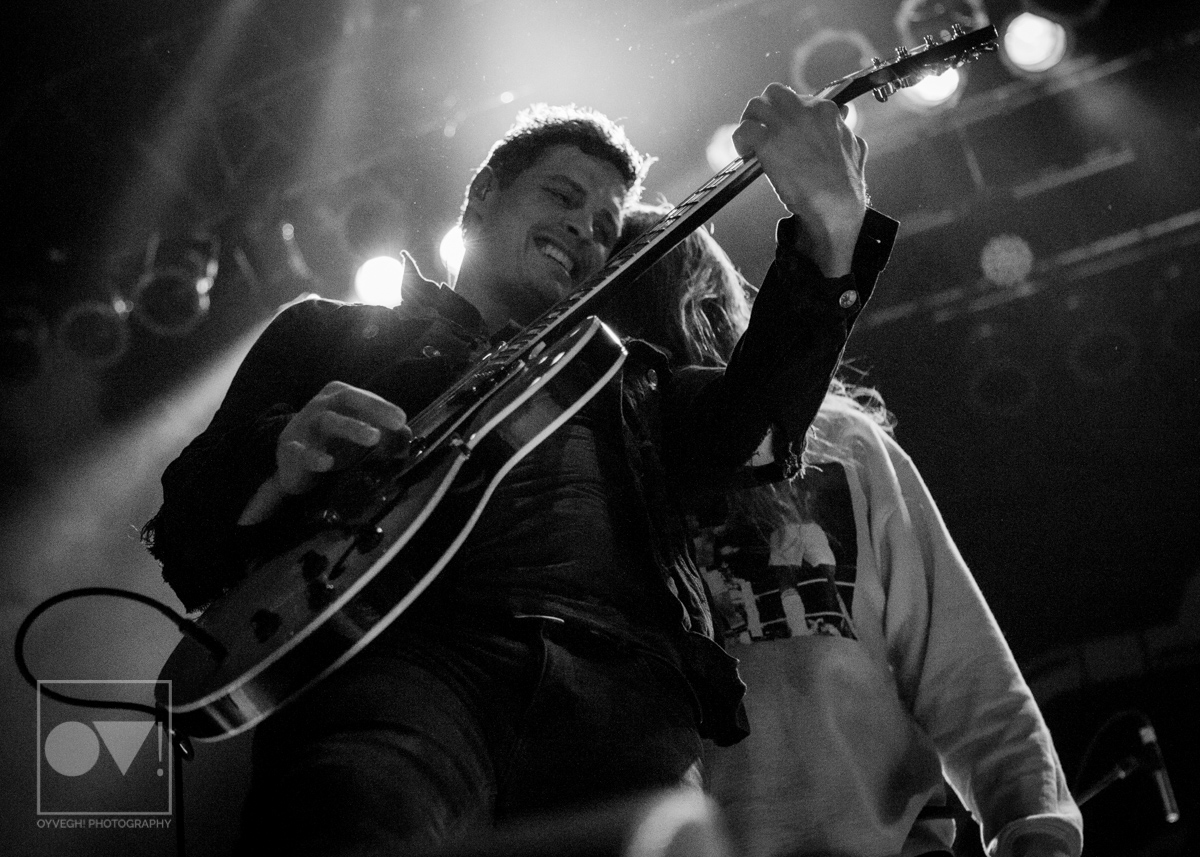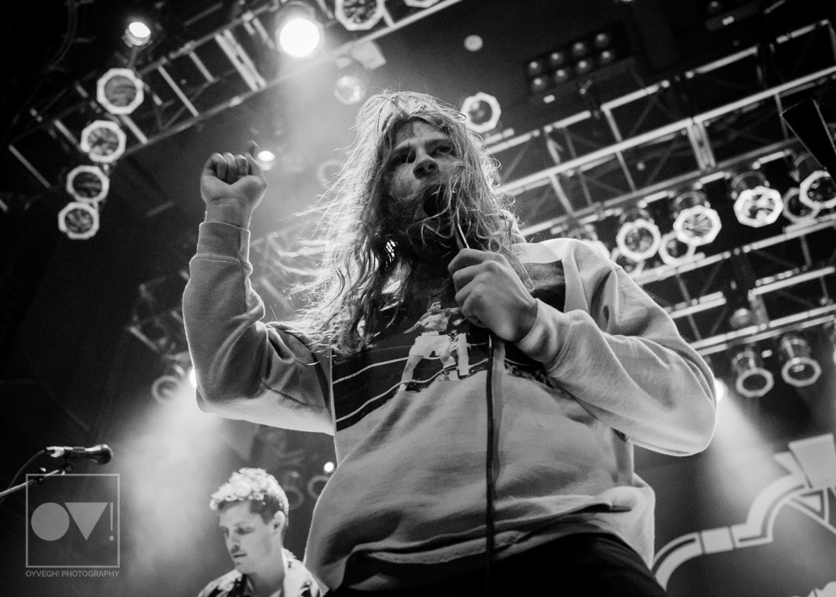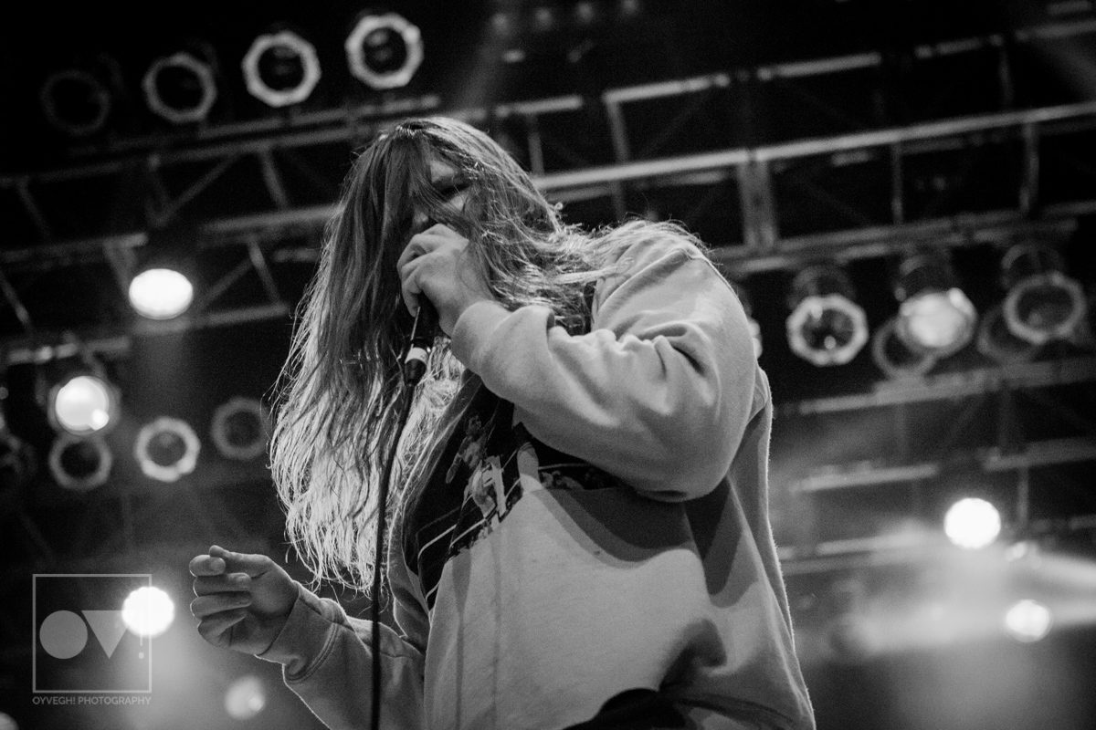 Being up close in the photo pit, Emmons looks like just a regular dude. Wearing a ratty hoodie with a photo of Cassius Clay vs. Sonny Liston printed on the front, Emmons mimicked boxing moves, punching and blocking the air as the rest of the band warmed up their guitars. But with the first words of the song “Godless, Graceless and Young”, he was ready to rock, thrashing his head, letting his hair fly wild to the wind. He prowled around to each of his bandmates, leaning on them or singing into their faces as a sort of support system to get him through each song.