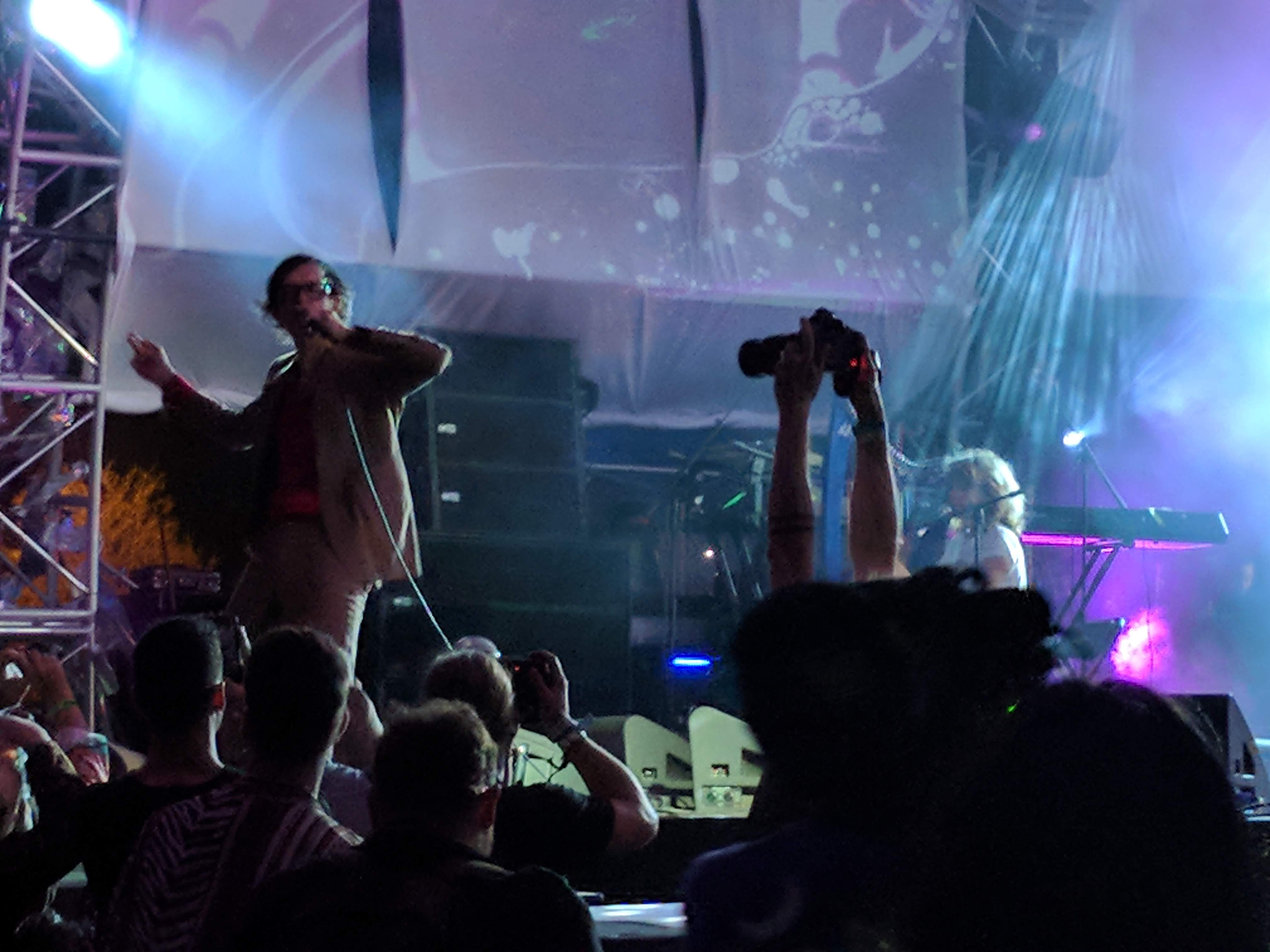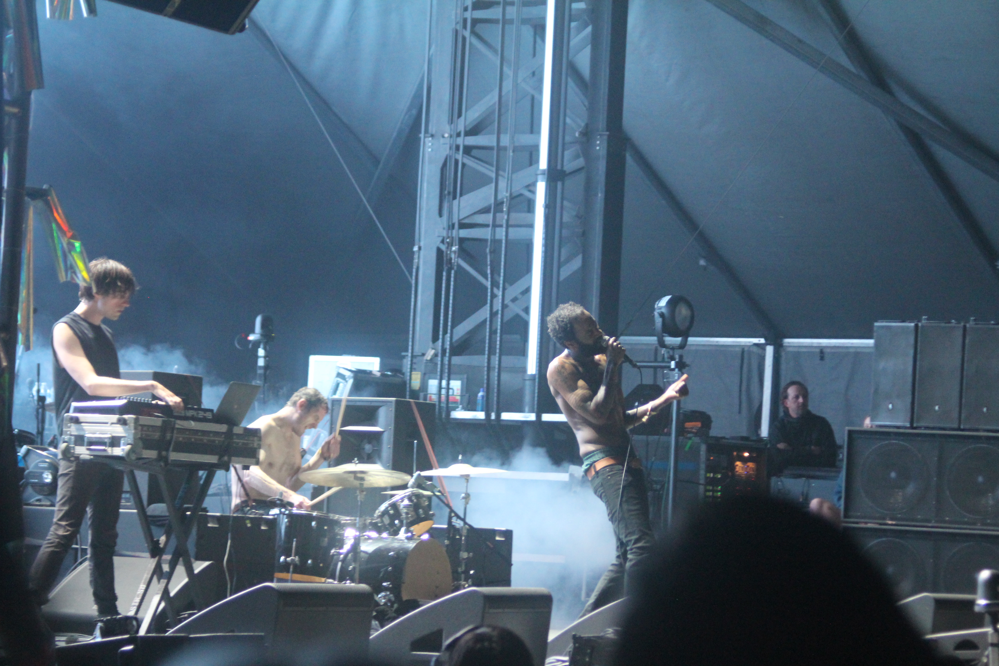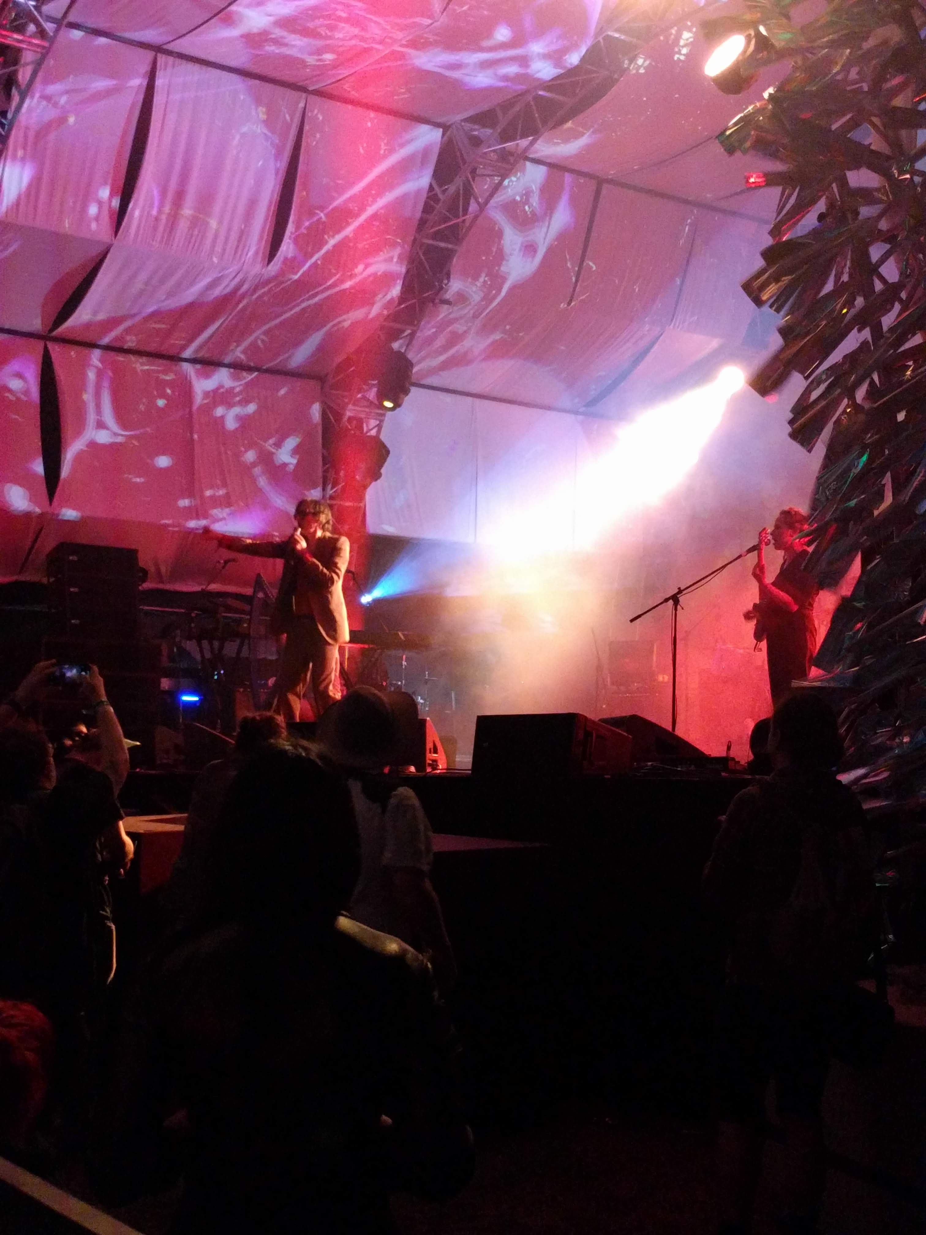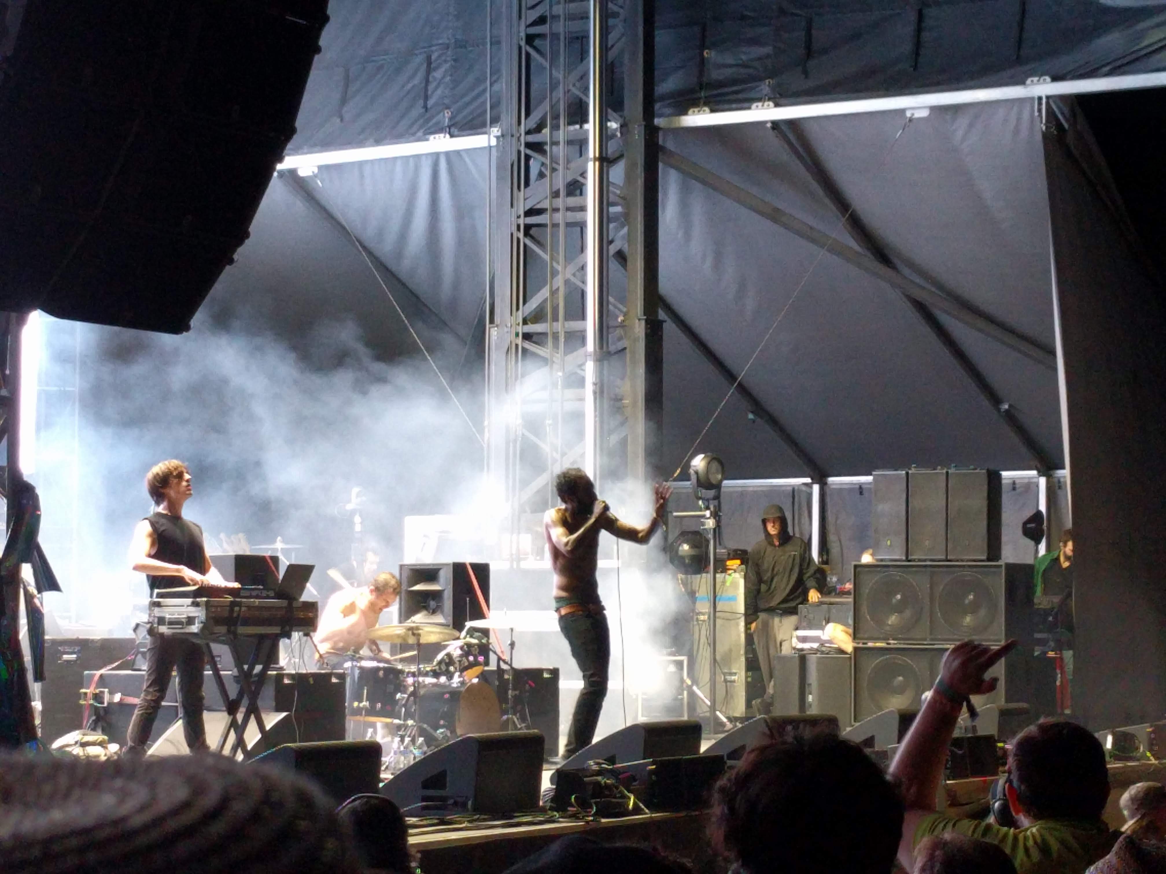 The penultimate set at The Moon stage belonged to Death Grips, another anticipated set for a rowdy crowd. As per their usual, Zach Hill, MC Ride, and company played a good mix from their body of work with Hill manically drumming over a prerecorded tracks and Ride viciously screaming every word amidst the chaos. They didn’t stop once to greet the crowd, say hello, comment on the weather, or anything. It was strictly business with brash intensity throughout.
