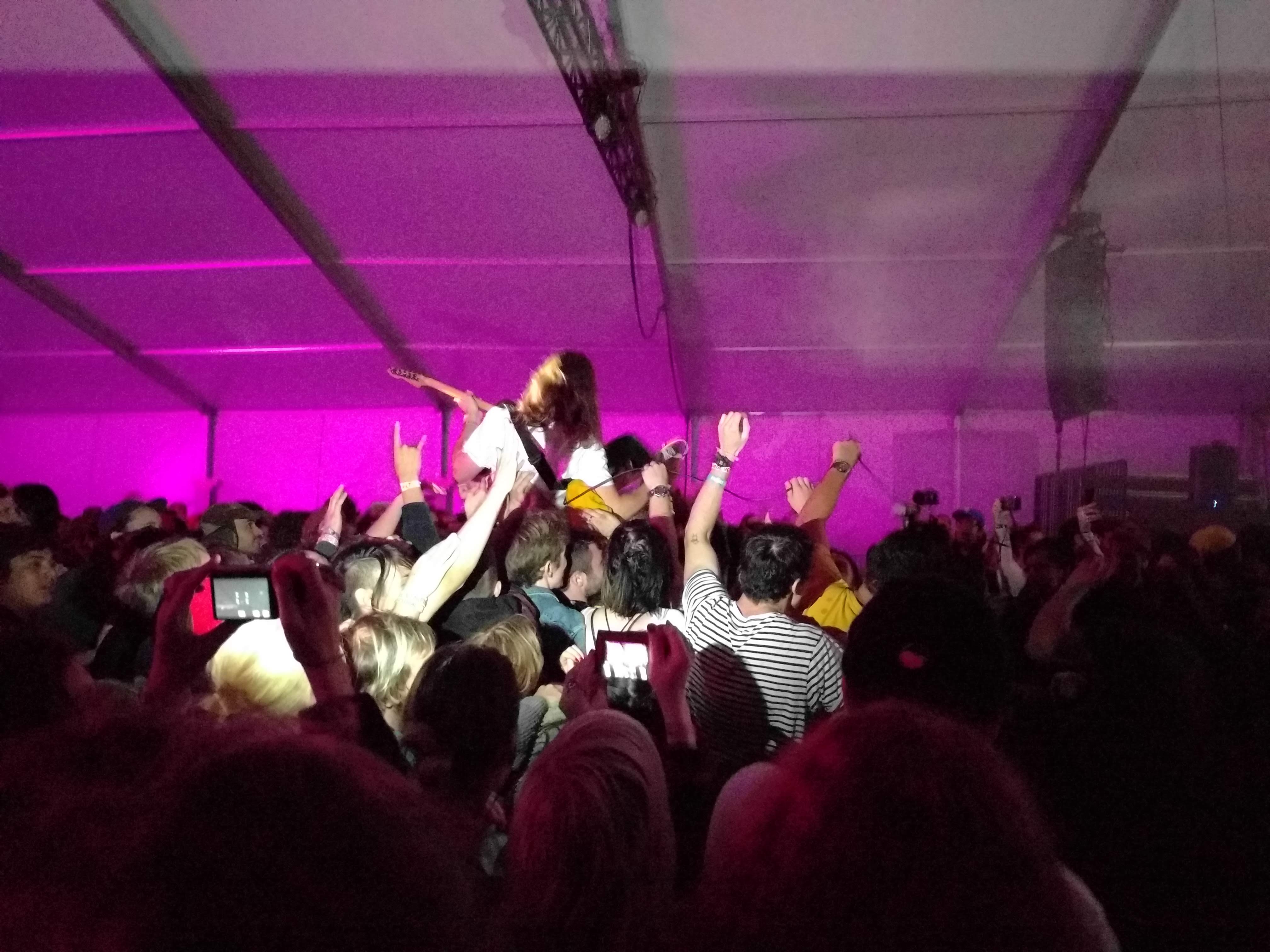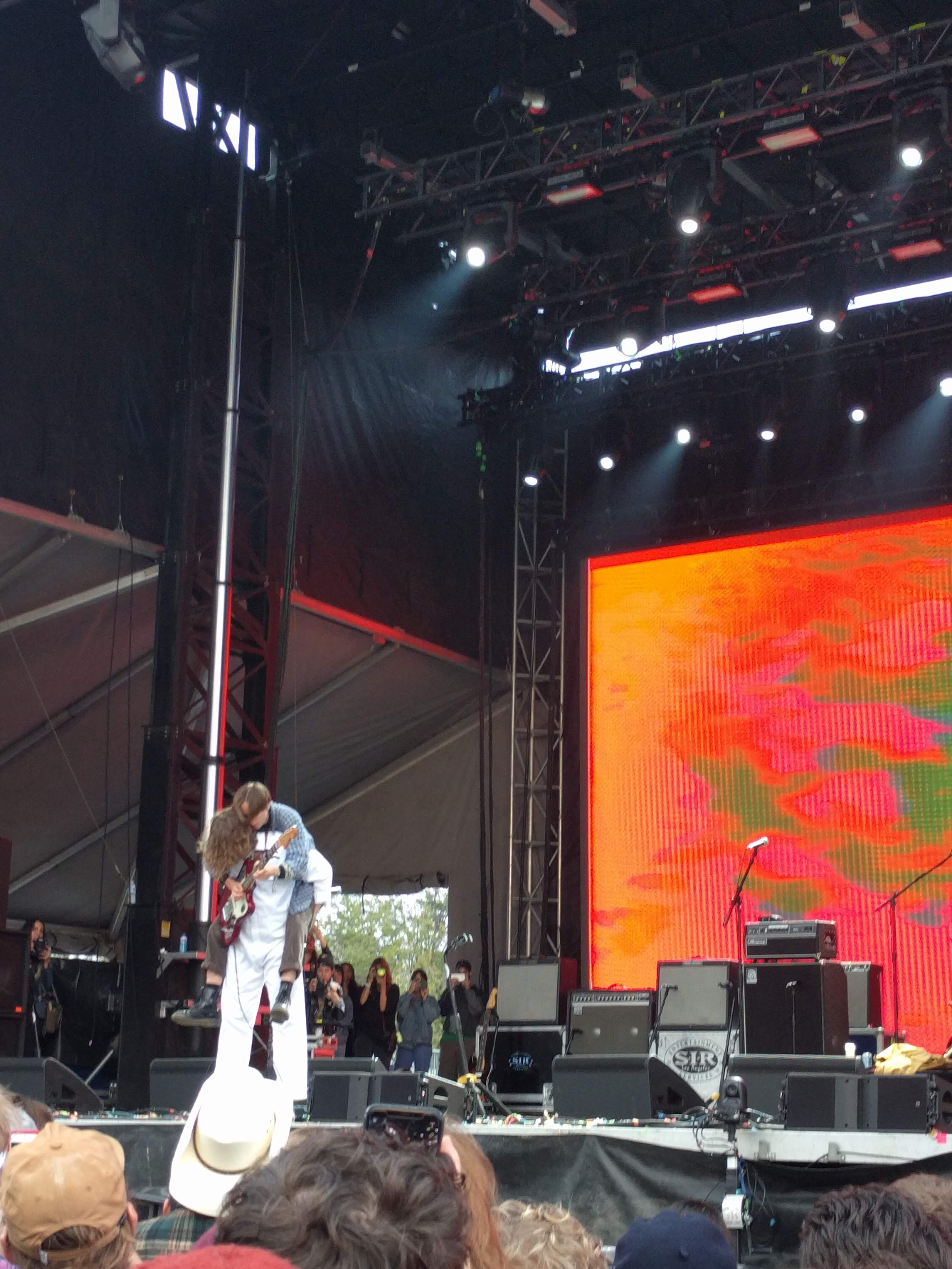 Among the changes to Saturday, Kevin Morby was moved from The Block stage to The Moon stage, allowing me to basically post up all day over there in true astronaut fashion. Morby played all across his discography, throwing in crowd favorites “Harlem River” and “City Music”. In the excitement of his set, he also managed to let guitarist Meg Duffy climb on his back to have her play his guitar, as well as scope out a fan in the audience’s own Kevin Morby cutout to wear it himself. All in a day’s work for Mr. Morby.