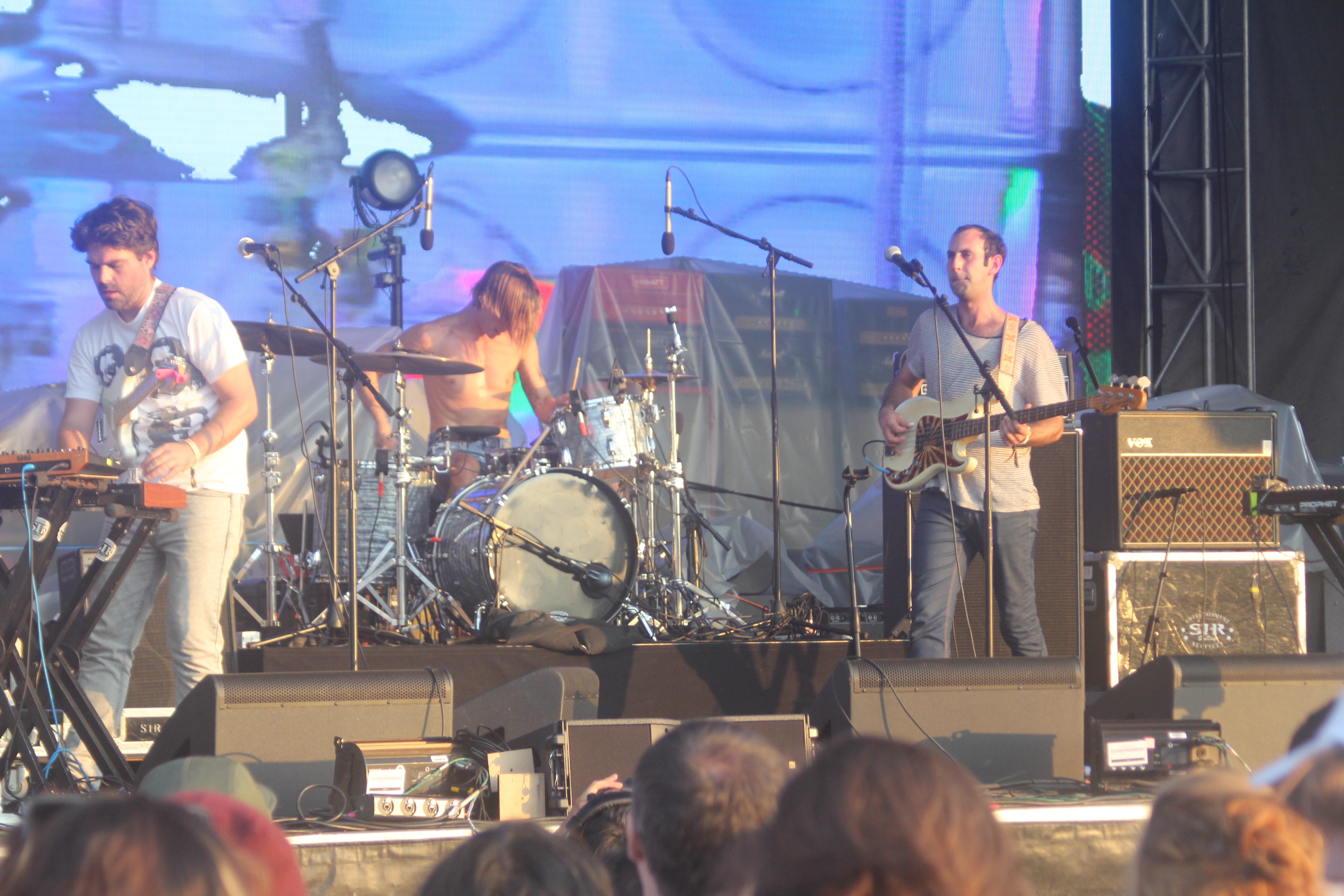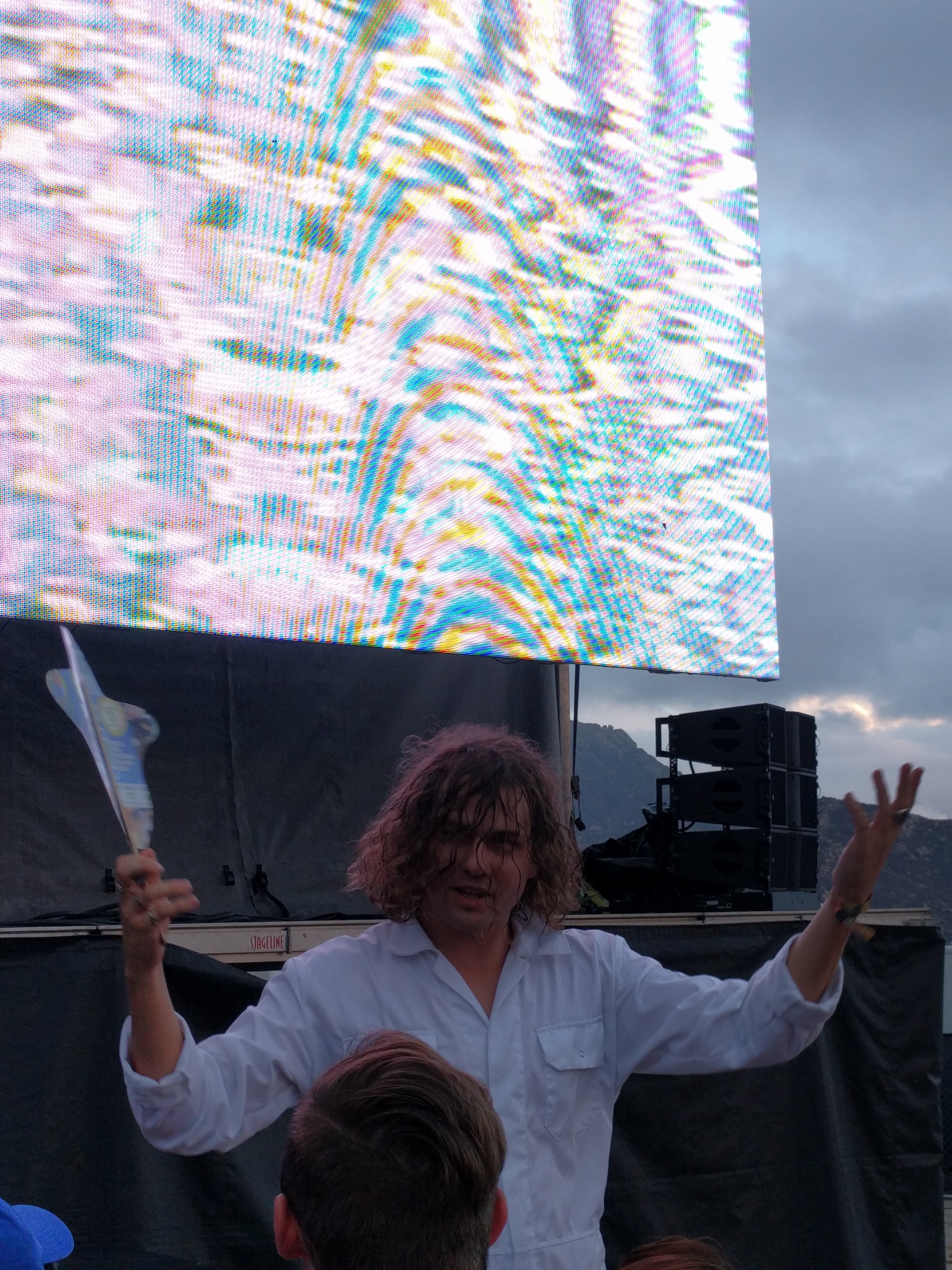 As oohs and ahhs rushed buzzed among crowd, so Tame Impala finally took the stage a few minutes behind schedule. The fact that they came on seemed shaky enough given the weather conditions, and the caution came into fruition just three songs into their set. Management took to the stage, interrupting Kevin Parker as they CALMLY informed the crowd that the set would have to be postponed over concerns about the harsh weather setting in.
