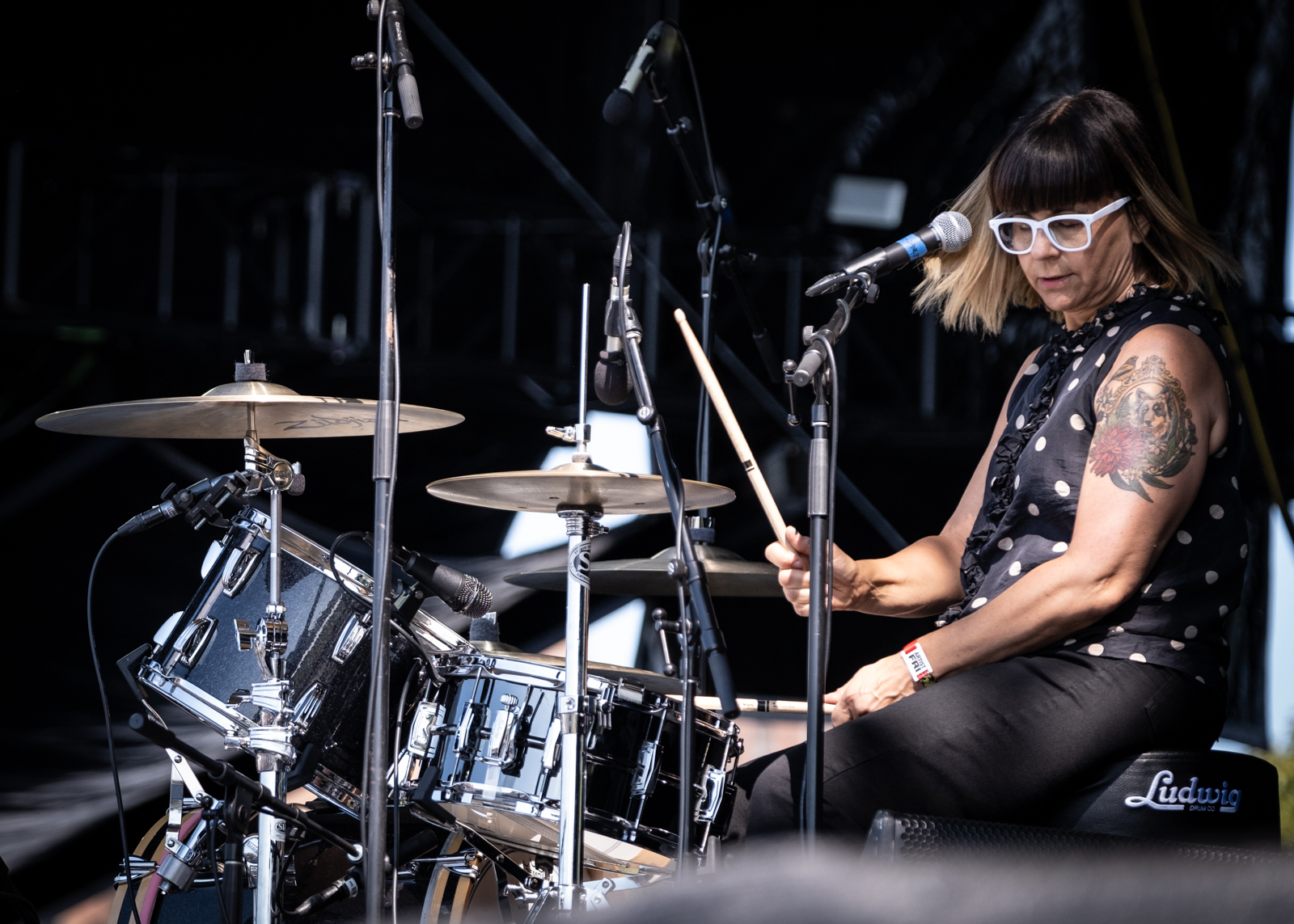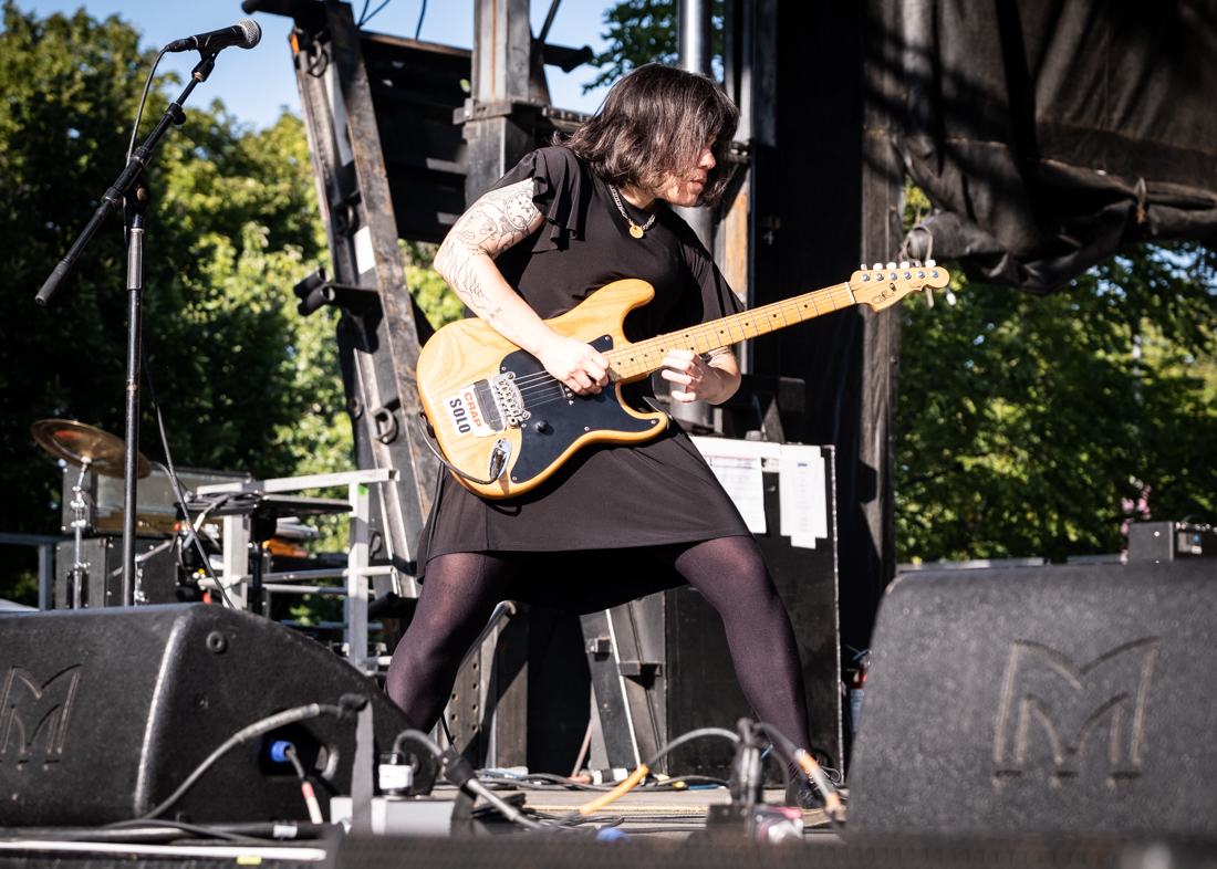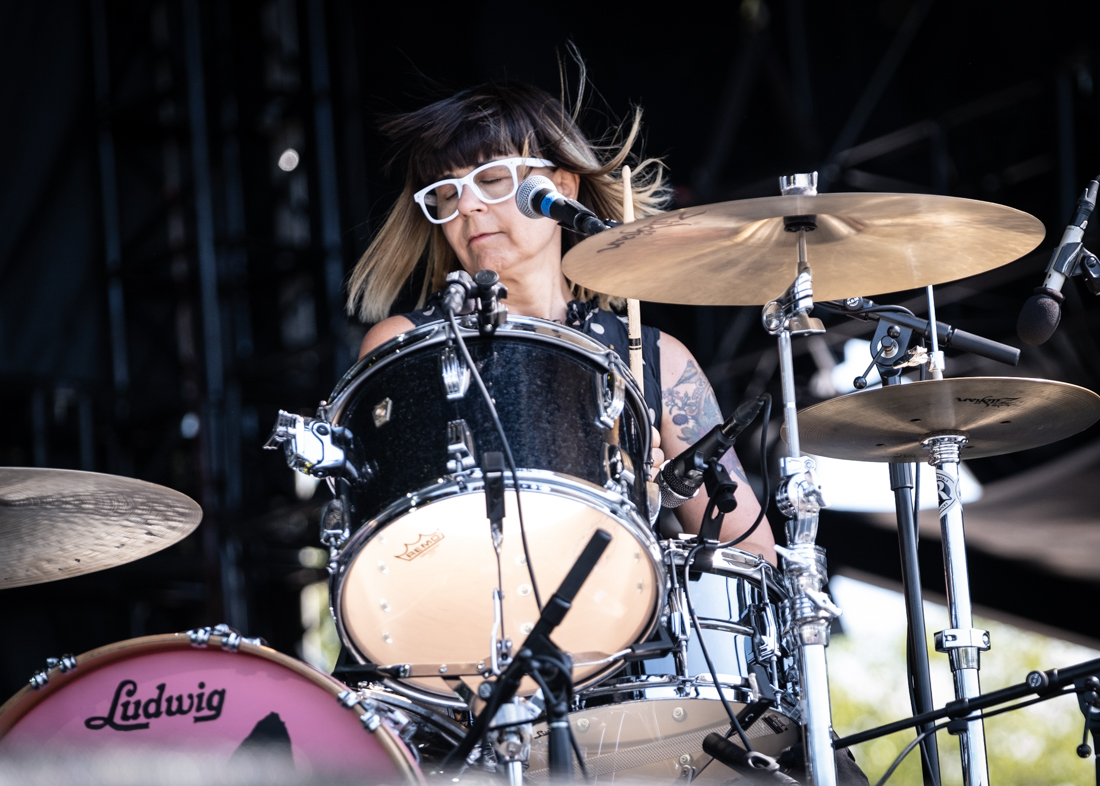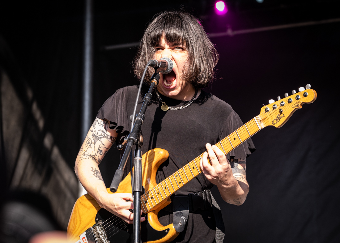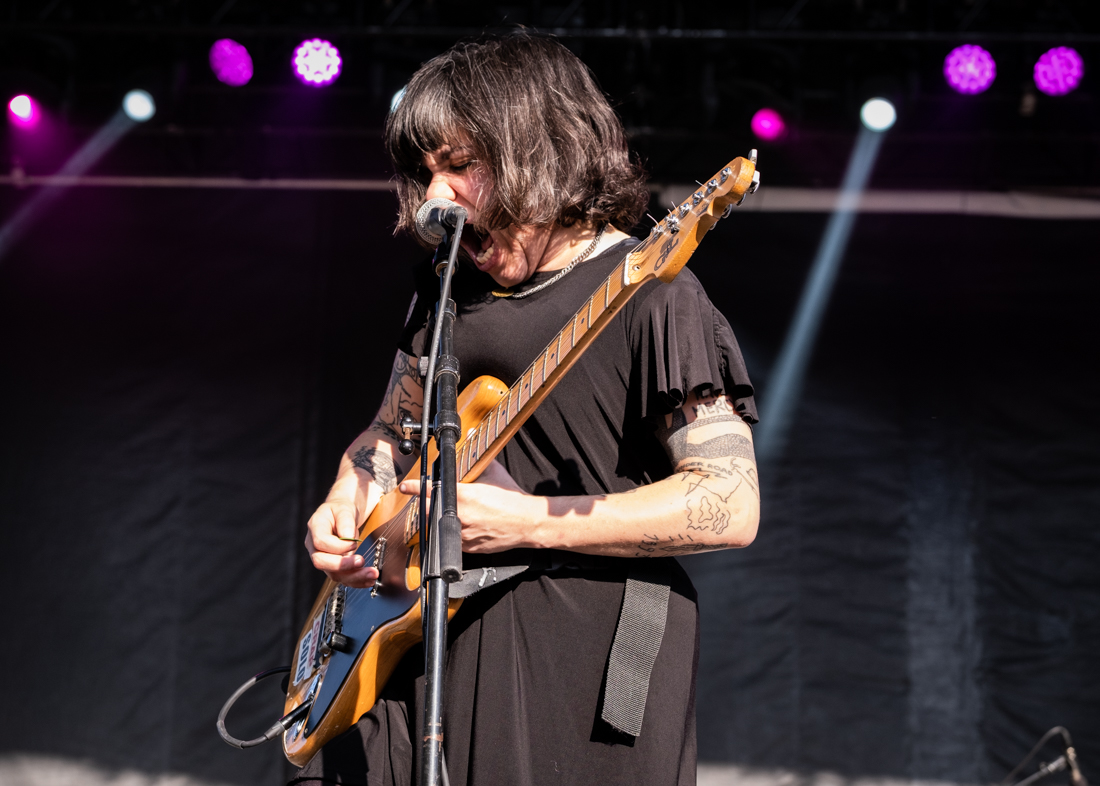 I simply didn’t have the luxury to prep like I normally do, which was both nerve-wracking and freeing. After validating my press credentials I mapped things out with my festival colleague, BGM’s very own, unsinkable Judie Vegh. Then my day started at the Riot Stage for Olivia Jean. Part goth and part 1960s garage rock, Olivia’s retro sound gave me enough energy to run over to the Rebels stage for the last half of The Bobby Lees. I followed that set with Quasi at the Roots stage.