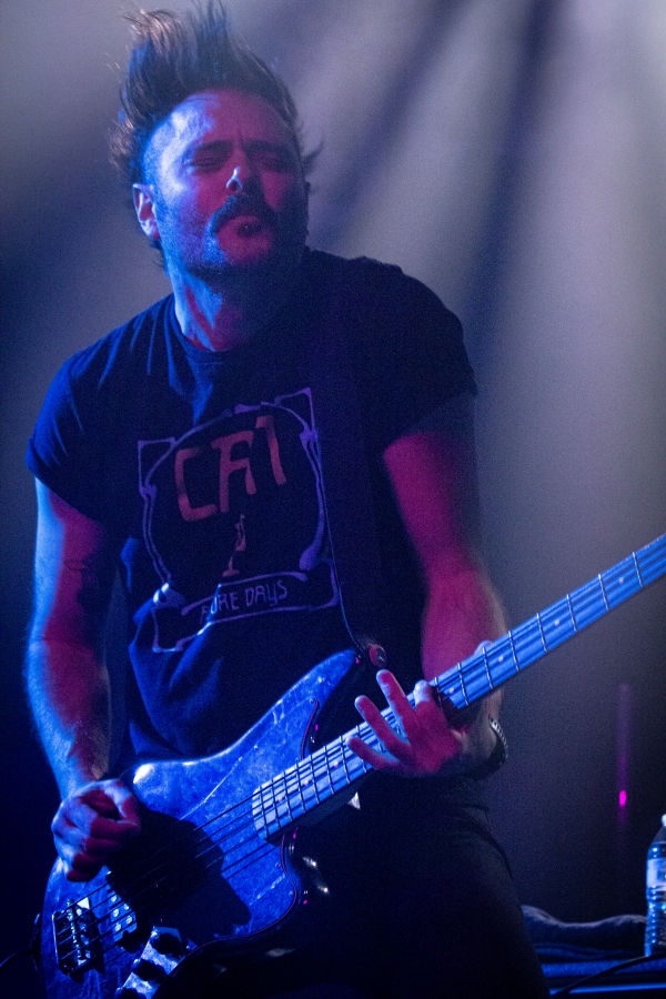 Showing up early on the unseasonably warm February night in Chicago, I was treated to a bold and loud set by UK’s Tigercub. Looking like the 80s yet playing like a nasty rock outfit from the 2000s, Tigercub’s set made you want to dance while the filthy chugging bass threatened to break your neck. And it was all done with a splash of new-wave beauty. The frontman’s playful banter with the crowd – ranging from topics like football to Oasis and The Smiths – added to the already entertaining night. It was the perfect send-up for the night’s main attraction, Porno For Pyros.