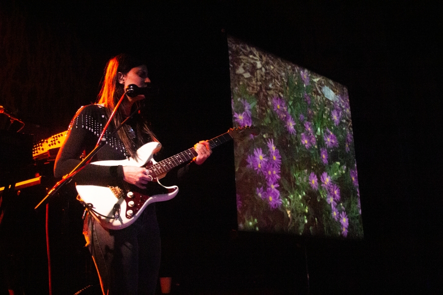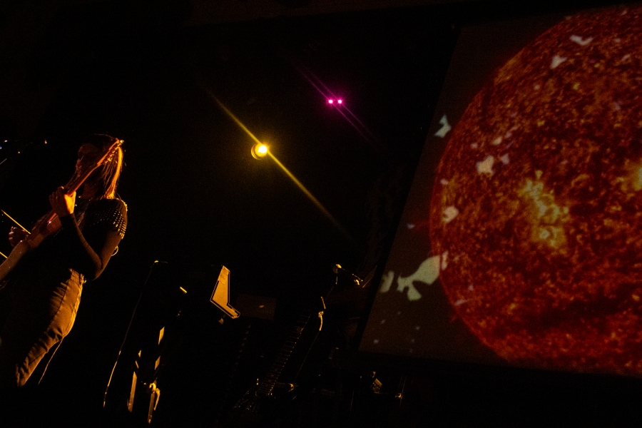 To start off the night was Midwife, an artist one could see as the polar opposite of Blood Incantation. However, their stark differences only highlighted how perfect of an opener she was. A beautiful blend of shoegaze, ambient, and metal, the hypnotic Midwife captivated the Metro audience for the entirety of her set. We hung onto every note on stage with only a guitar, a telephone-shaped microphone, and a screen for projections. The silence was profound, adding more weight to the beautiful music.