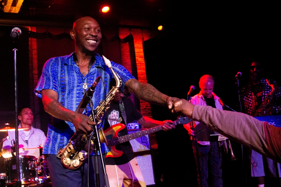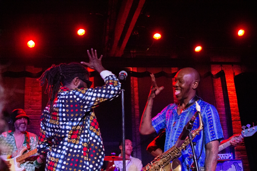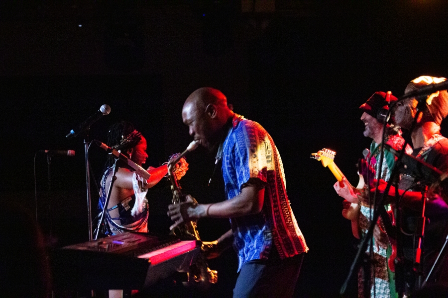 That same energy surged through his April 21st performance at Space, an intimate venue near downtown Evanston. The crowd, an eclectic mix of Afrobeat devotees, hipsters, and hippies, packed the room, eager to dance, connect, and celebrate. Monday night or not, everyone came ready to move.
