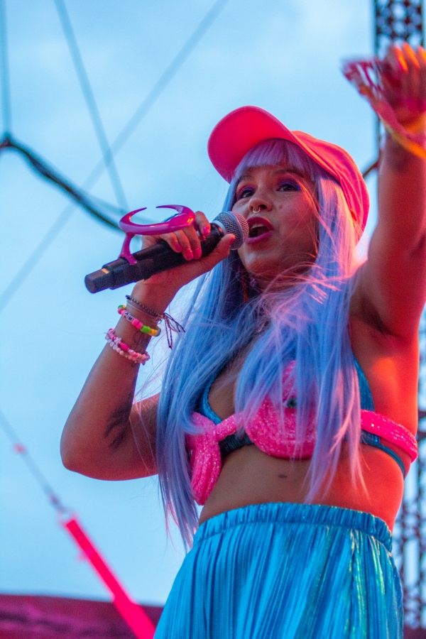Despite the weather taking a turn later in the night, The Salt Shed’s outdoor fairgrounds transformed into a full-blown tropical escape. More South American beach party than a Chicago concert venue. The warm air pulsed with vibrant, Latin-infused beats as ASTROPICAL delivered a night bursting with rhythm, movement, and celebration. The Tuesday crowd was electric, energized by the arrival of the supergroup combining Colombian electro-tropical trailblazers Bomba Estéreo and Venezuelan indie sensations Rawayana. With summer slowly creeping in and the city’s mood as brooding as its skies, this burst of Latin American joy came right on time.