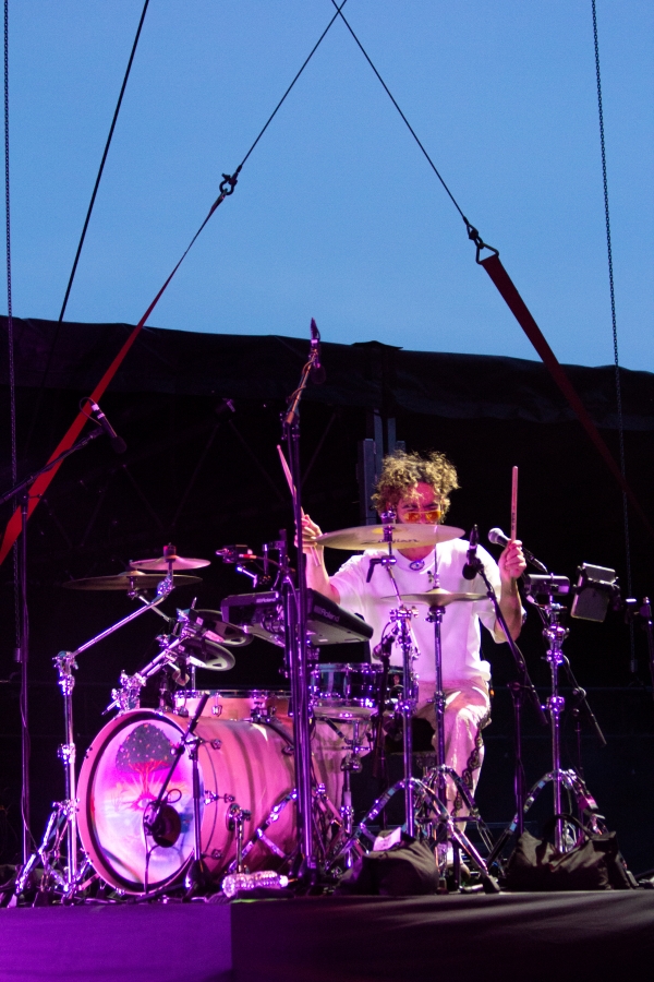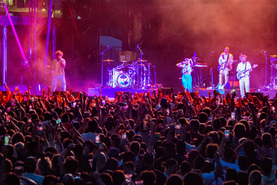 At exactly 8:15 p.m., ASTROPICAL stormed the stage. The backing band opened with a slow, rhythmic build as Beto Montenegro emerged to ease into the sultry intro of “Brinca (Acuario).” The lyric “No hay ley en la música” (“There is no law in music”) rang out as a promise of boundary-free celebration. Moments later, Liliana Saumet burst onto the stage, her gritty vocals cutting through the night like a spark. His smooth swagger coupled with her fierce fire, fused into something electric. The crowd exploded with energy, and for the next 75 minutes, the dance floor never cooled down.
