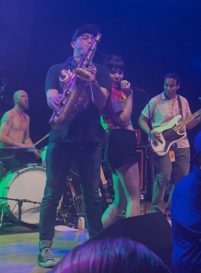 Starting things off for the evening was Orange County’s Bite Me Bambi. When they first started out, they had OC ska sound down pat, but as they’ve grown as a band, the music has become more relatable and direct. Lead singer Tahlena Chikami and the gang have found a great balance between high-energy ska punk and a personal touch. When you watch the band perform live now, they seem happier and more engaged. Even though they opened up the show in such a large venue, Bite Me Bambi did an amazing job of making it feel intimate with plenty of banter with the audience and interaction with the entire room.