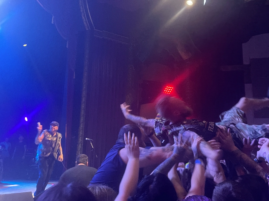 The crowd was properly riled up, exhausted, and slightly dehydrated by this point. Before going any further, I need to give major kudos to the security staff. Knowing how hot it was in the venue, when they weren’t catching crowd surfers, they were handing out water to the crowd. They must have gone through at least ten cases throughout the night, and I drank four bottles alone. There was also an EMS crew there available to help folks cool down and replenish their fluids, if needed. Bang up job by the entire crew in that building. They took care of everyone as much as they could during an unprecedented early summer Michigan heat wave.