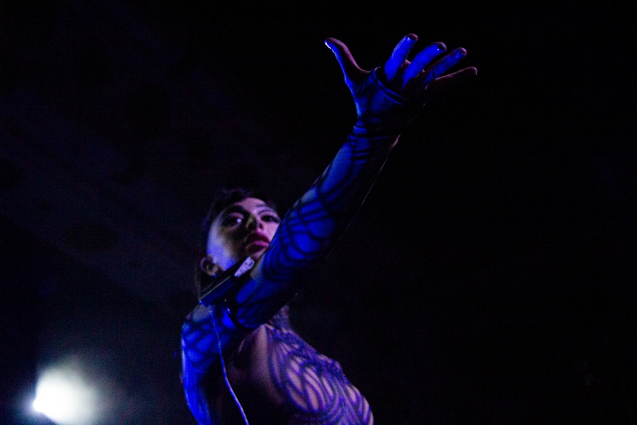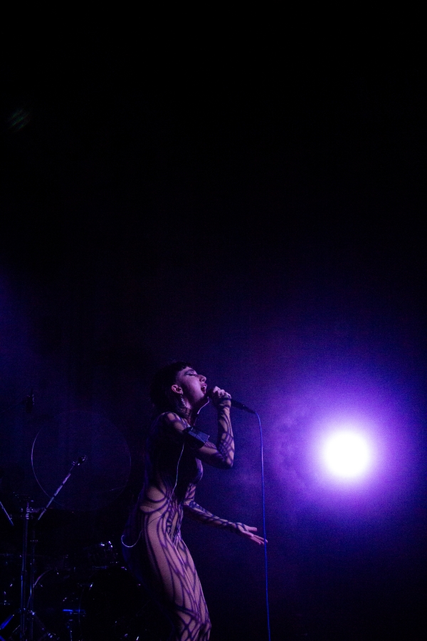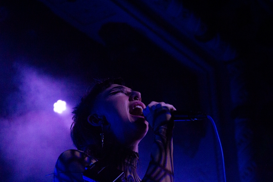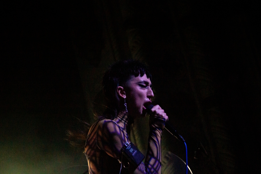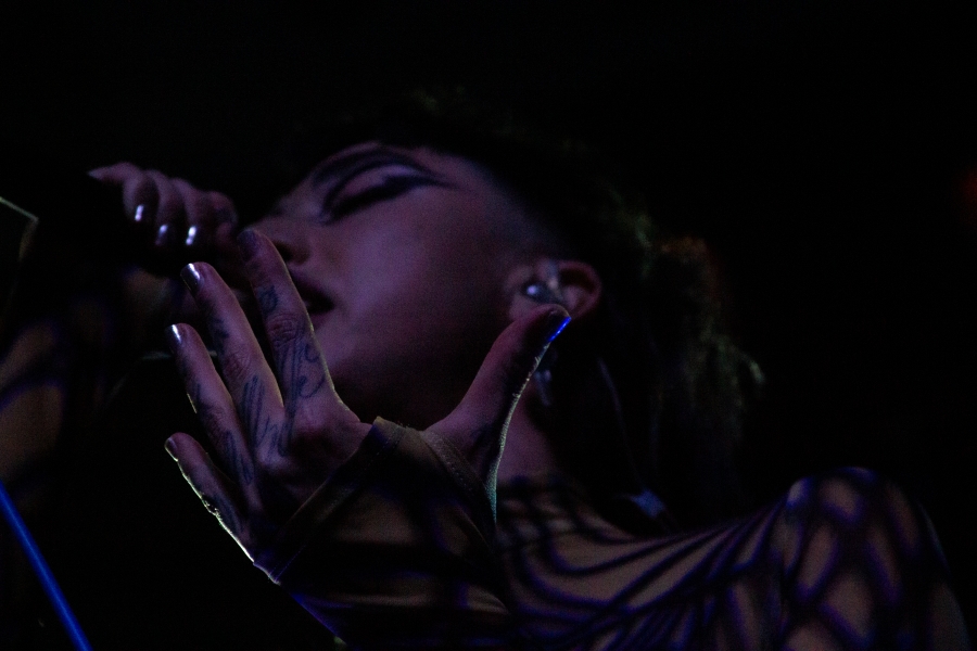 Pixel Grip’s set began with a disembodied recording explaining the idea of “percepticide,” which melted seamlessly into the night’s first track, “Crows Feast.” Intimate and vocal-forward, it gently hooked the room. Rita Lukea’s voice was graceful even as she insisted it was “fucked up”. When the group launched into “Last Laugh,” the crowd erupted, pulled headfirst into the band’s loud, unapologetic industrial voyage.